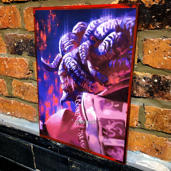 Wood mounted decoupage artwork, with painted boarders. Size about 43cm X 30 cm.